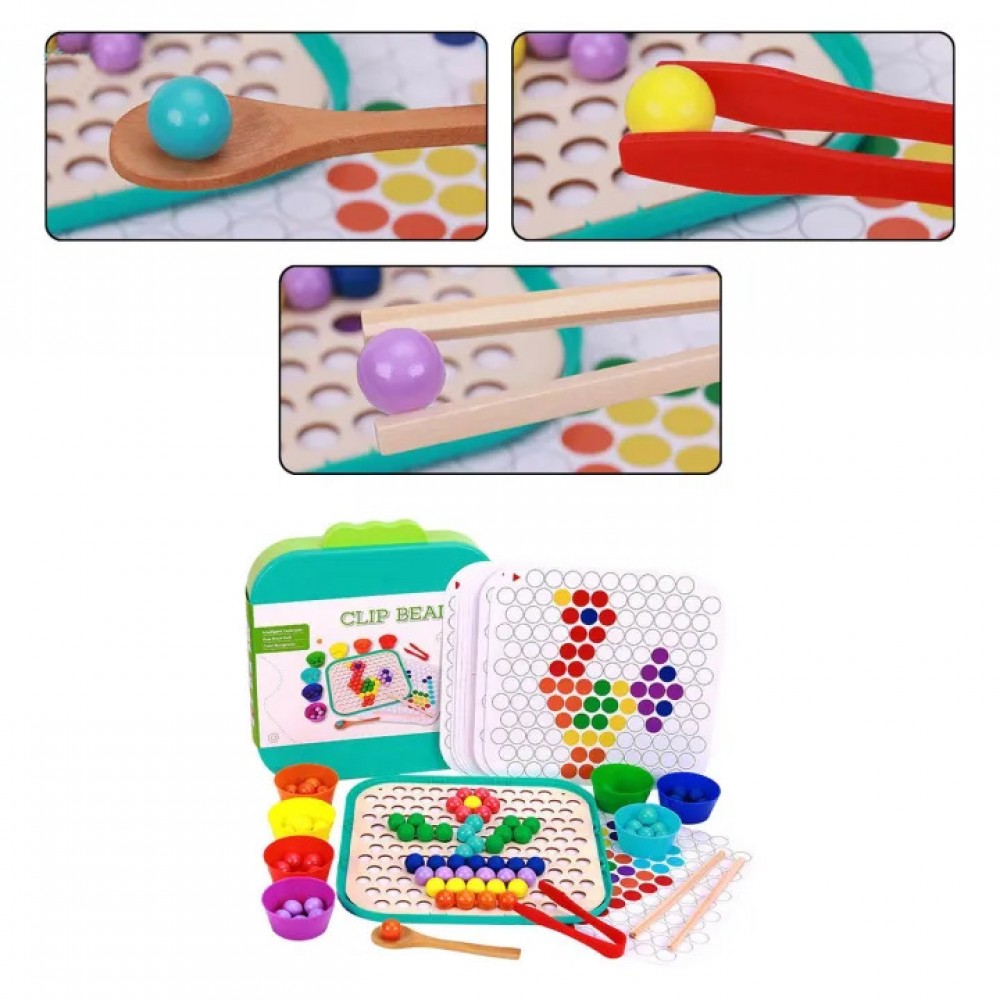 Փայտից զարգացնող խաղ ուլունքներով` նախատեսված գույների ճանաչման և մատորիկայի զարգացման համար: